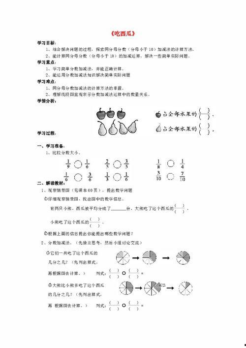 接下来,我们来看看如何用数学来分割瓜。想象你面前有一个大西瓜,你想要平均地把它切成几块,每一块的大小都是相等的。这时候,数学就派上用场了。